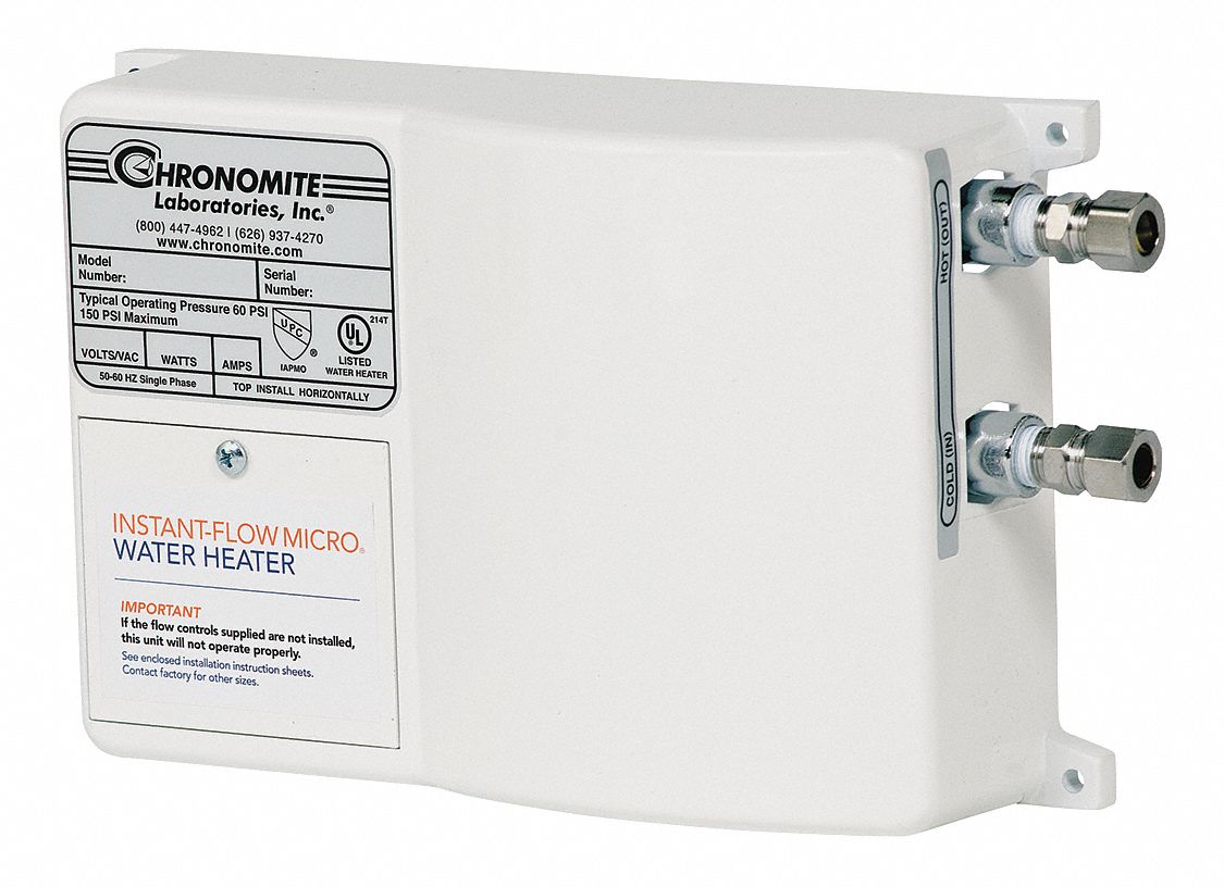 Chronomite instant flow micro low flow 0 35 gpm point of use electric tankless water heater 20 amp 277 volt 5540 watt 110 f.